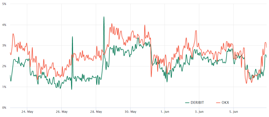 Based on the futures premium, also referred to as the basic indicator, it appears that professional traders have been steering clear of leveraged long positions or bullish bets. However, even when the price retested the $1,780 mark on June 6, it wasn’t sufficient to shift the sentiment of these large investors and market makers towards a bearish outlook.