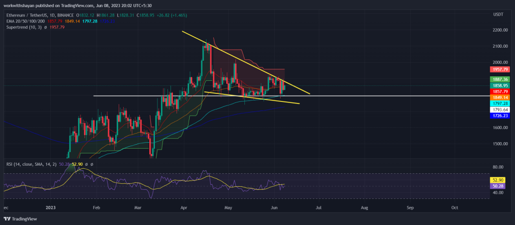The crypto market has recently met a sharp collapse, creating panic selling among investors. The Securities and Exchange Commission (SEC) has recently filed lawsuits against two major cryptocurrency exchanges, Binance and Coinbase, leading to a significant downturn in the market. This bearish momentum has created a bloodbath in the crypto arena, with Ethereum (ETH) gaining attention. However, despite the negative news, the ETH price continues to show positive momentum, leaving investors on the edge of the next price level.