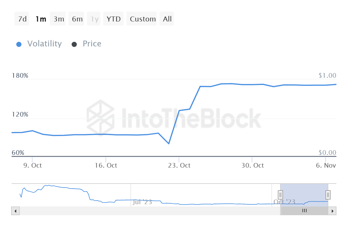 Amid these conditions, the volatility of Pepe coin has jumped to a four-month peak at 172%, introducing the chances of substantial moves. Should buyers step in with considerable purchases at a low point, there’s potential for the price of Pepe to surge past the resistance levels by month’s end.