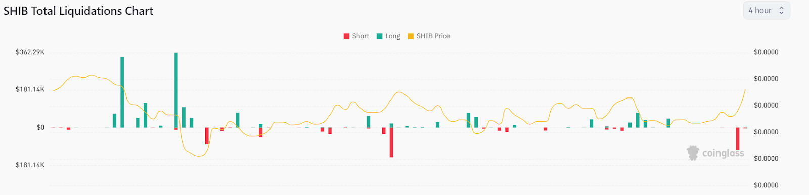 According to Coinglass, there has been a significant increase in short-liquidation as the SHIB price moved in the opposite direction of sellers’ expectations. Data indicates that short positions totalling $110,000 were liquidated today, boosting the confidence of bullish traders.